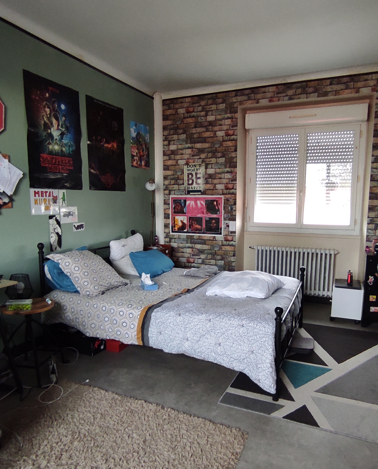 A l'étage, elle dispose de 3 grandes chambres et une salle d'eau. A l'extérieur, un jardin avec une dépendance/atelier pouvant être réhabilité en espace convivial et un cellier.