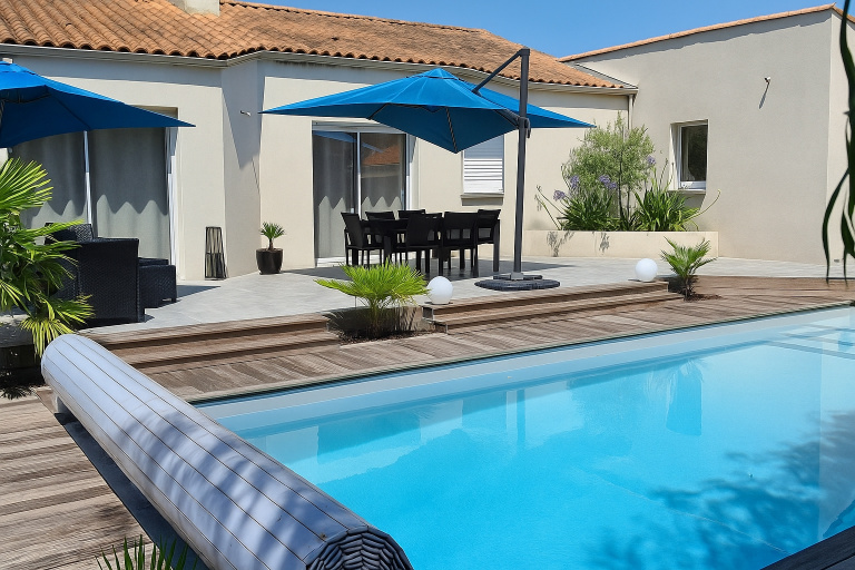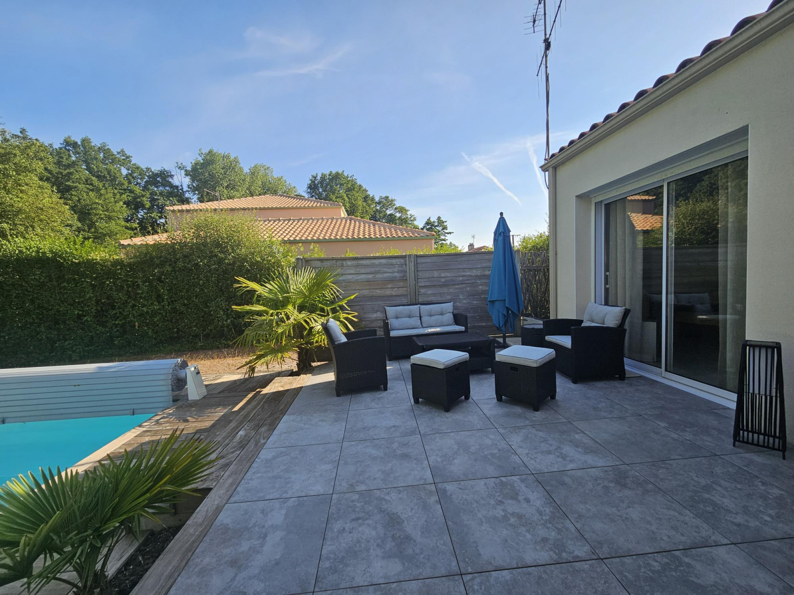 Accès direct sur une terrasse exposée S/O avec sa magnifique piscine 9X4 idéale pour les beaux jours.