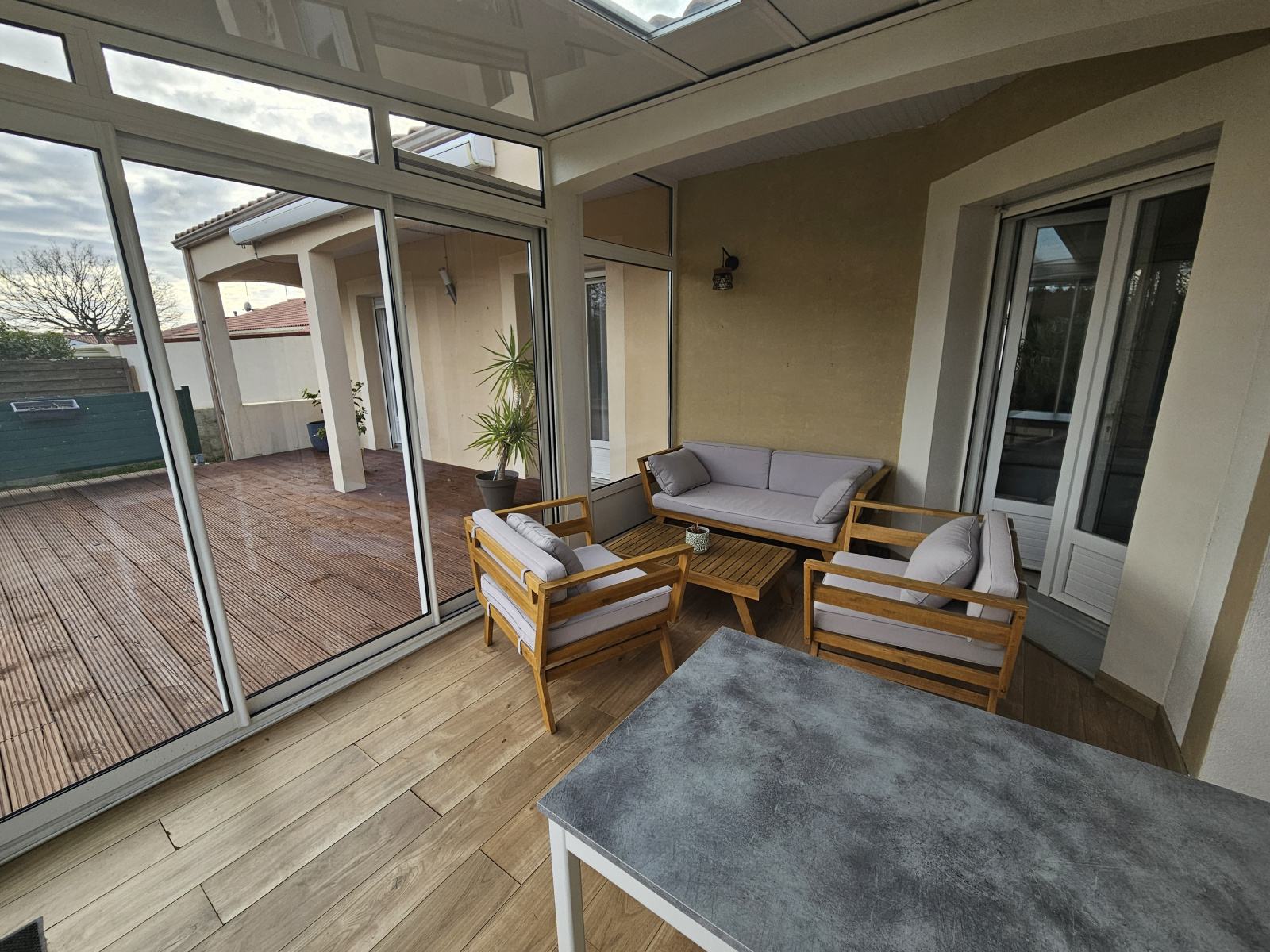À l’extérieur, vous apprécierez une spacieuse terrasse de 60 m², ainsi qu’un terrain de 800 m², offrant un bel espace pour les loisirs. Un chalet de stockage vient compléter l’ensemble.
