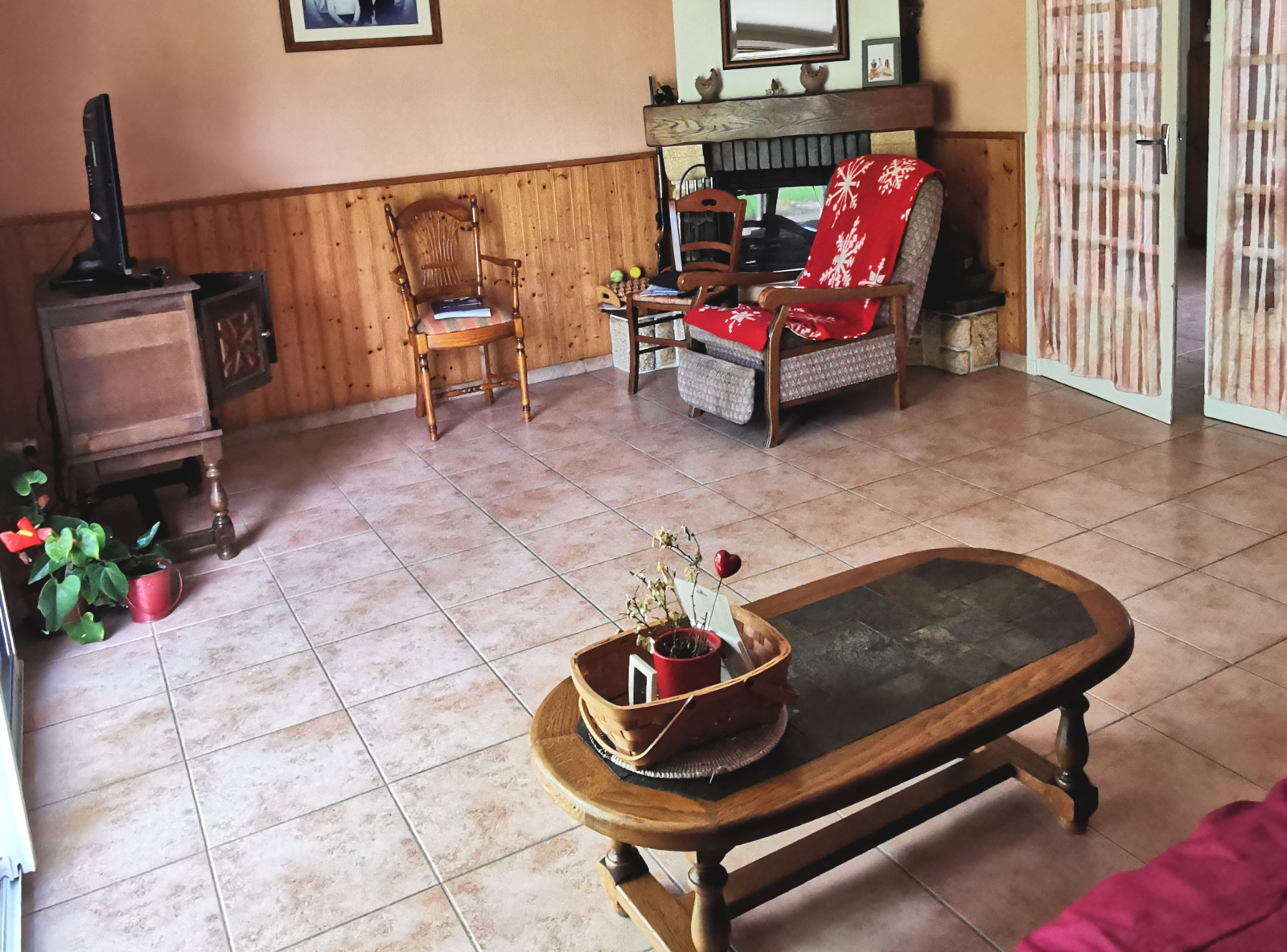 Salon chaleureux avec cheminée