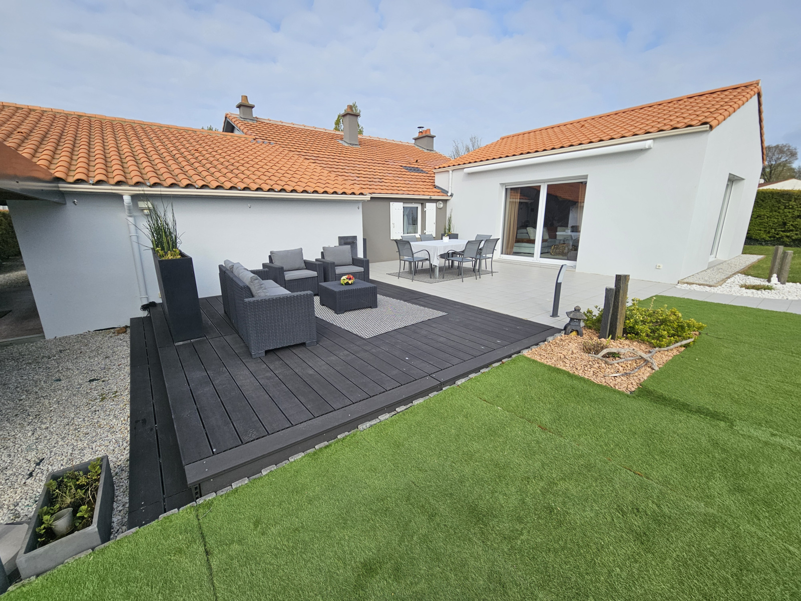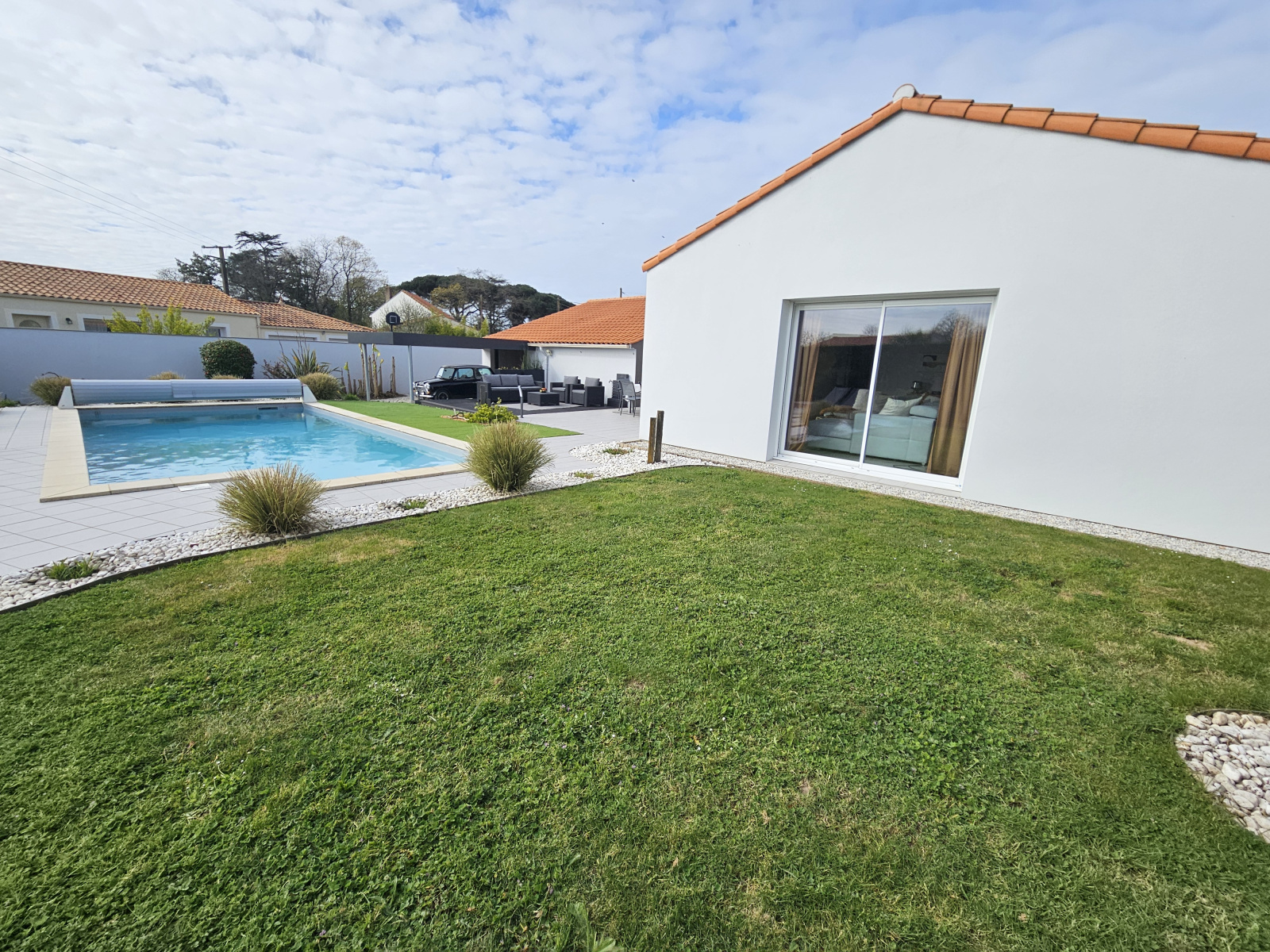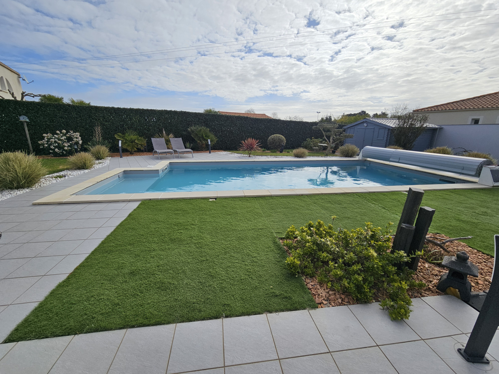 À l’extérieur, le charme opère immédiatement : profitez d’un jardin paysagé de 946 m², véritable écrin de verdure, pensé pour la détente et le bien-être. Laissez-vous séduire par la piscine chauffée avec entretien autonome, idéale pour prolonger les beaux jours en toute sérénité.